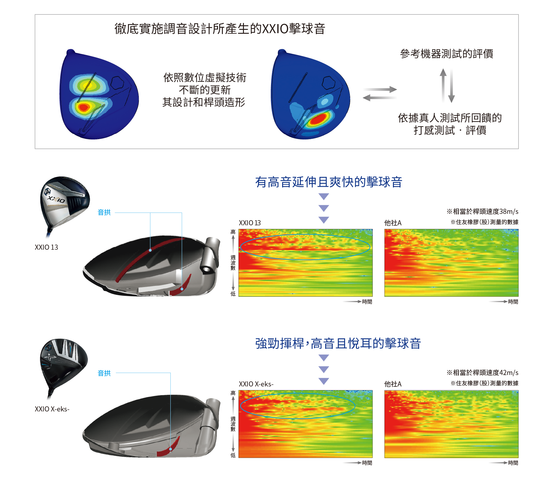 桿頭內部音拱設計,不論是擊中桿面哪個點都能實現XXIO獨有的悅耳擊球音。