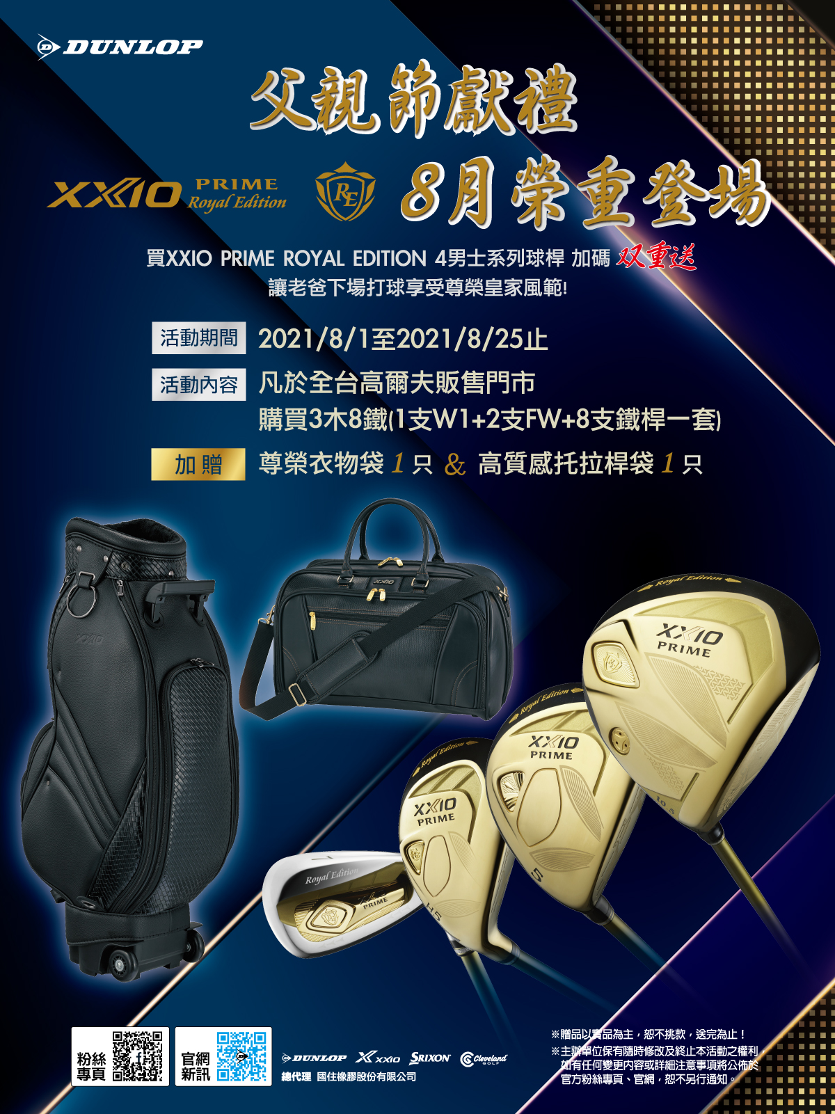 買XXIO PRIME ROYAL EDITION 4男士系列球桿 加碼雙重送~讓老爸下場打球享受尊榮皇家風範!