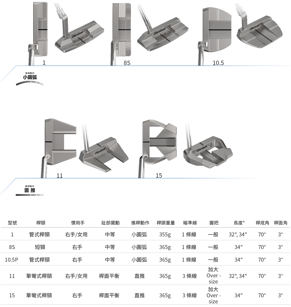 HB SOFT 2共有精心組裝的九種全新推桿,可供喜歡直推桿或小圓弧推桿動作的球友選擇,每款都有對應的桿頸、趾部擺動、瞄準線與握把設計。