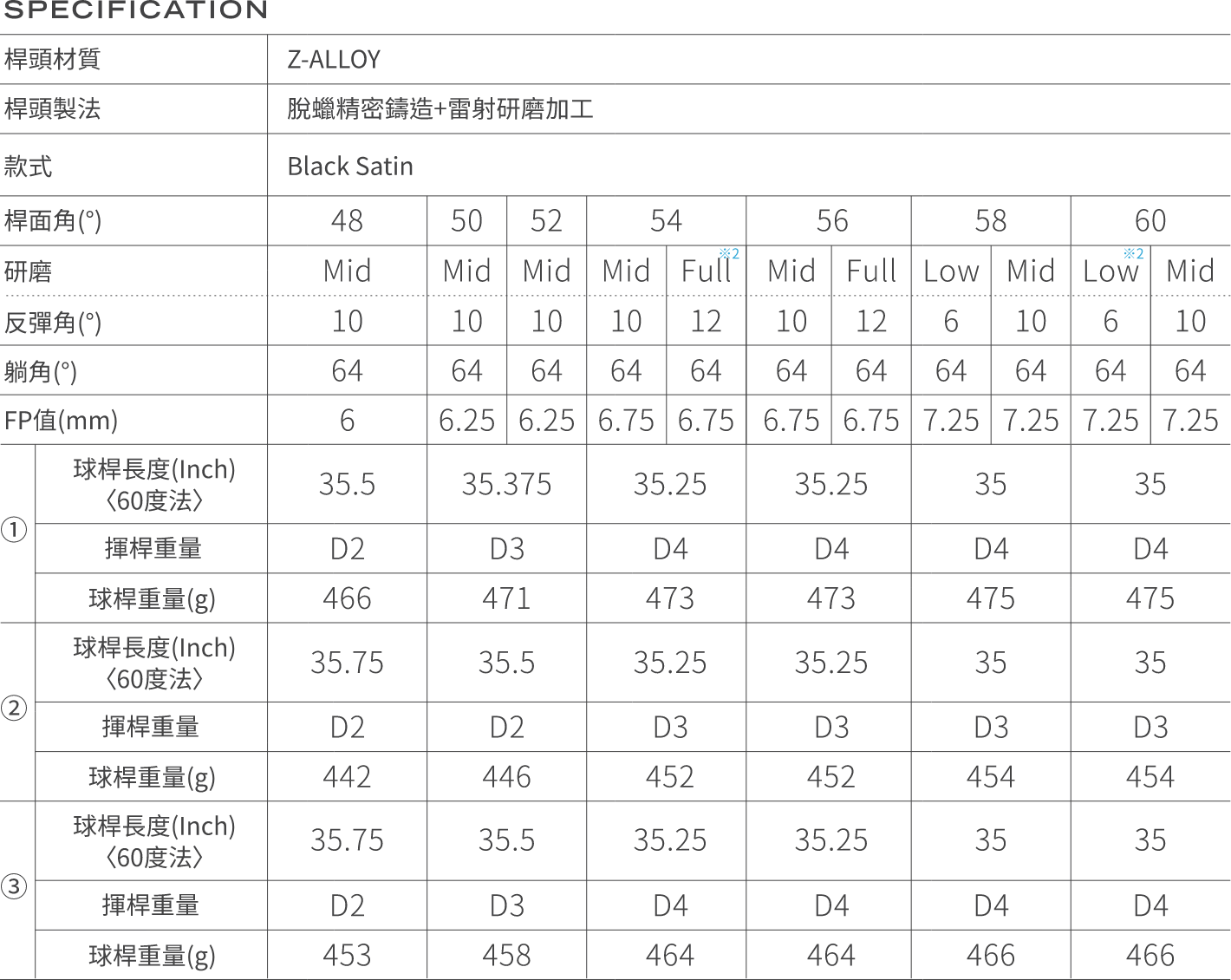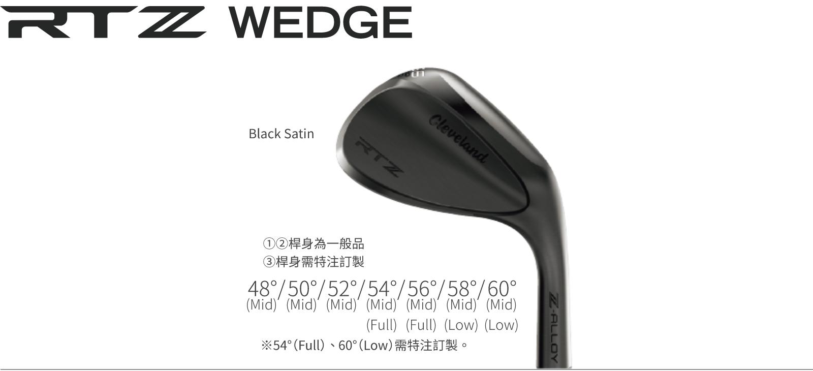 ※ 54°(Full)、60°(Low/Full)需特注訂製。