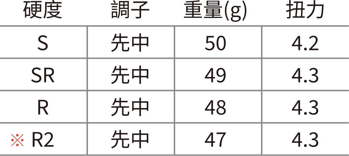 桿頭材質/桿面:(#5~9) 桿面:VR-鈦(Super-TIX® 52AFS)