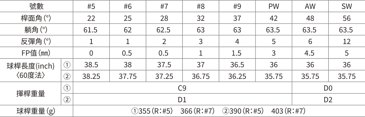 ●標示為實際桿面角度 ●MADE IN JAPAN ●符合新溝規則 ※球桿重量有可能改變。